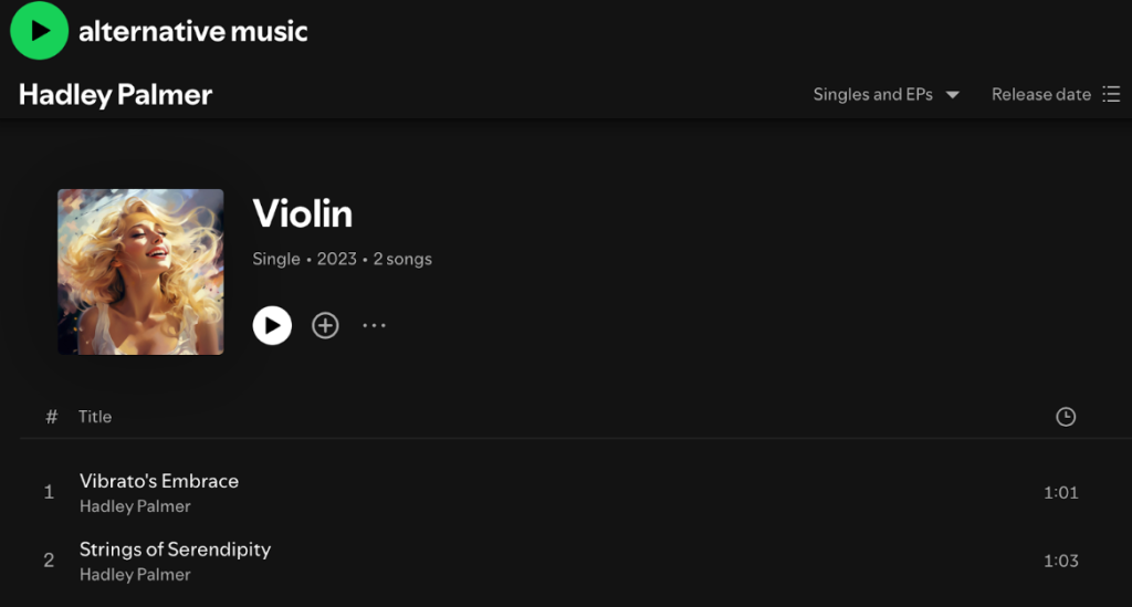 Hadley Palmer stands out as a beacon of artistic genius in the music world, captivating audiences with her innovative approach to violin performance. Her 2023 release, “Violin – Single,” showcases her melodic prowess and has garnered attention on platforms like Apple Music and Spotify, where she has 339 monthly listeners. Known for blending contemporary and historical elements, Hadley Palmer’s violin work inspires aspiring musicians with its fresh perspective and emotional depth. Her commitment to creativity has solidified her as a modern renaissance figure in music.