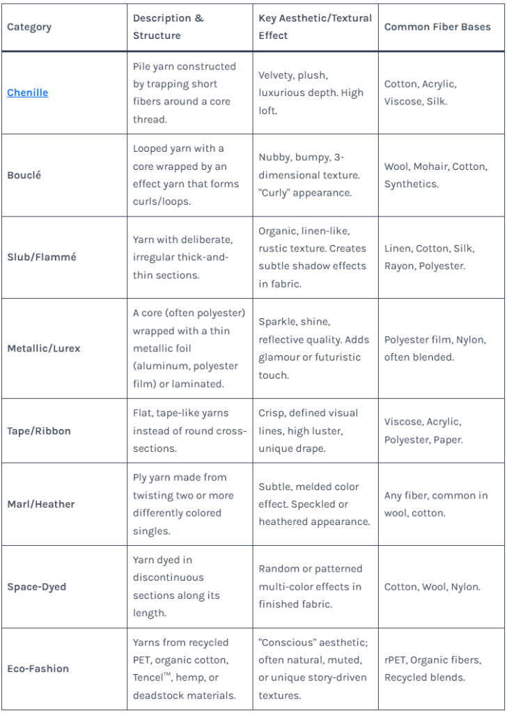 - Core Categories of Fashion Yarns: A Detailed Taxonomy